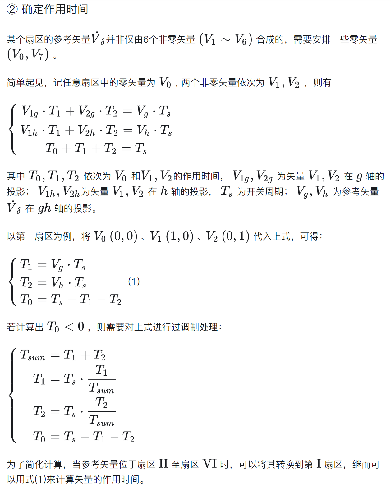 %% 计算 T0、T1、T2矢量的作用时间